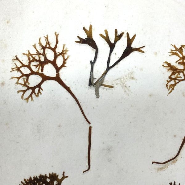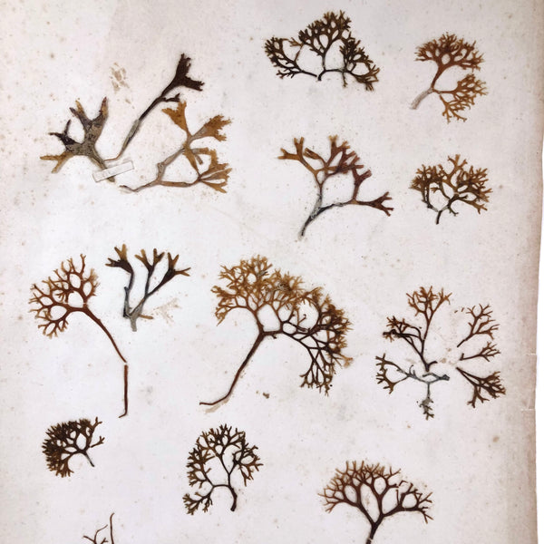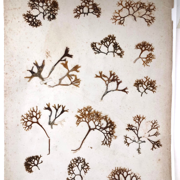 So lovely. I've had lots of individual seaweed/moss specimens, and a couple of albums of them too, but I've never had, or seen, a very large sheet of them like this, which to my eye has a wonderful sort of wildness and extra visceral feeling to it--like the salty sea itself. With tiny cut strips tethering the samples to the page, making it feel especially akin to a page from a large herbarium. A great one to frame simply, exactly as is, striking from a distance and also very intimate.