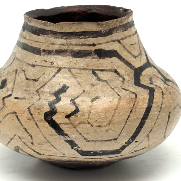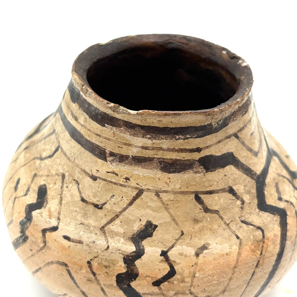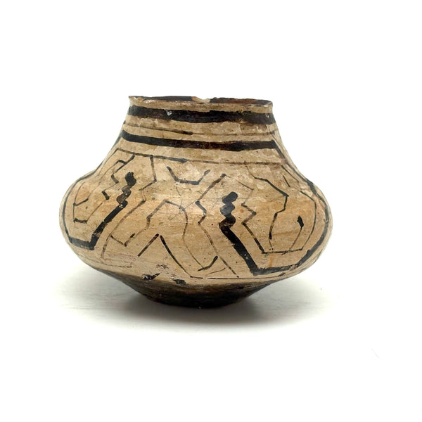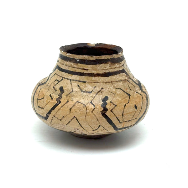 I've found a few pieces of Shipibo pottery over the years and always kept an eye out for them. This pottery is created by women of Shipibo tribe of the Peruvian Amazon; as I understand it, the maze-like hand-painted designs are sophisticated interpretations of their cosmic beliefs, including that the flow of the jungle rivers follow the same course as the stars. One does not see Shipibo pottery dating to earlier than the 20th century; I believe this is earlier than later 20th c., which would be considered an older piece. Coil built earthenware with polychrome.