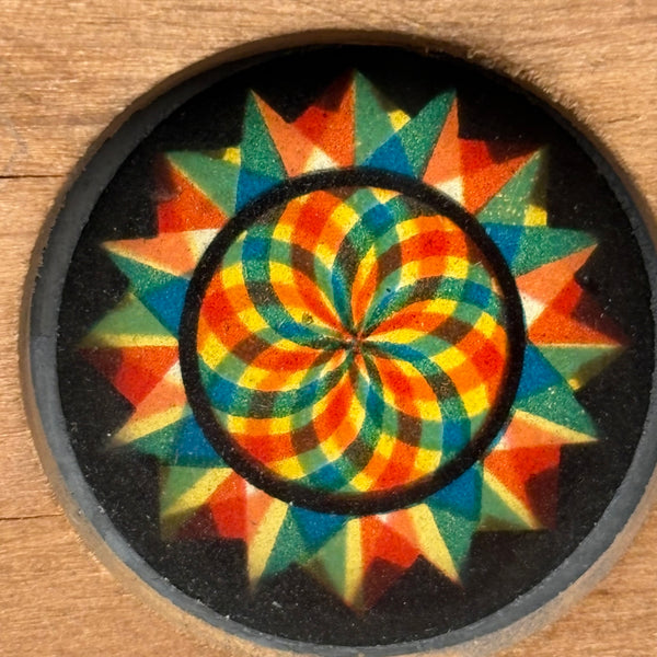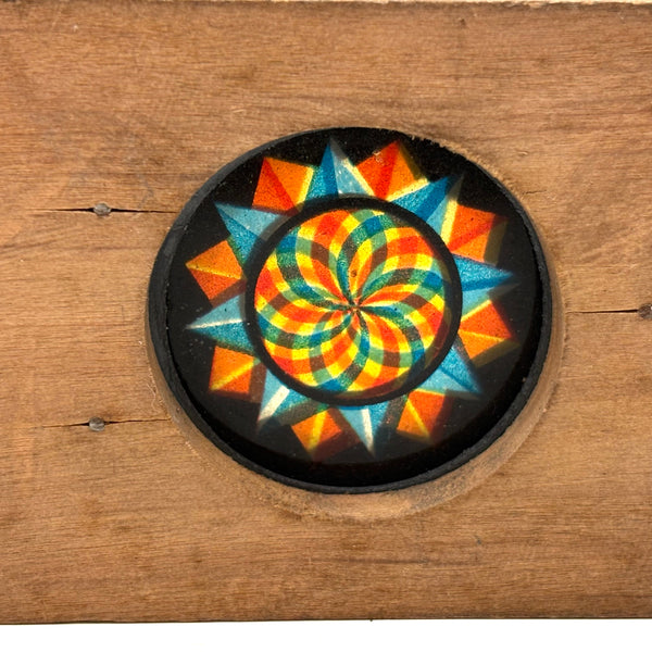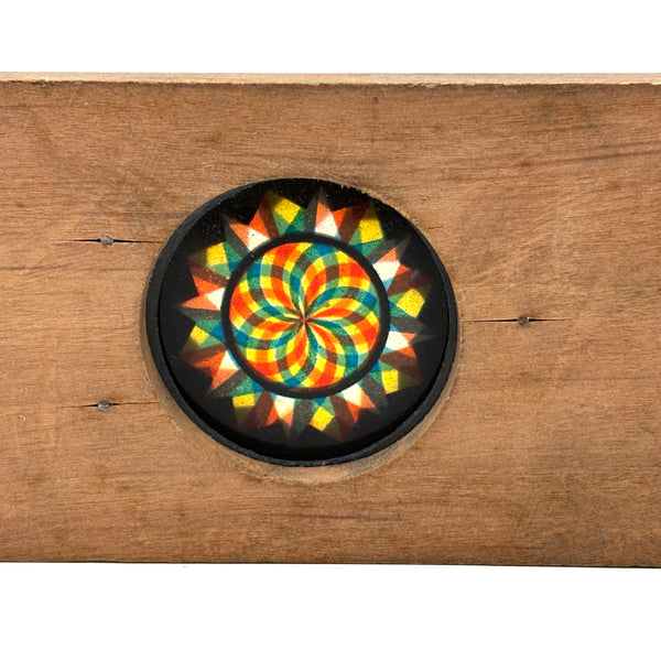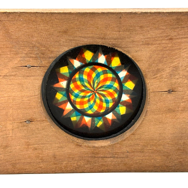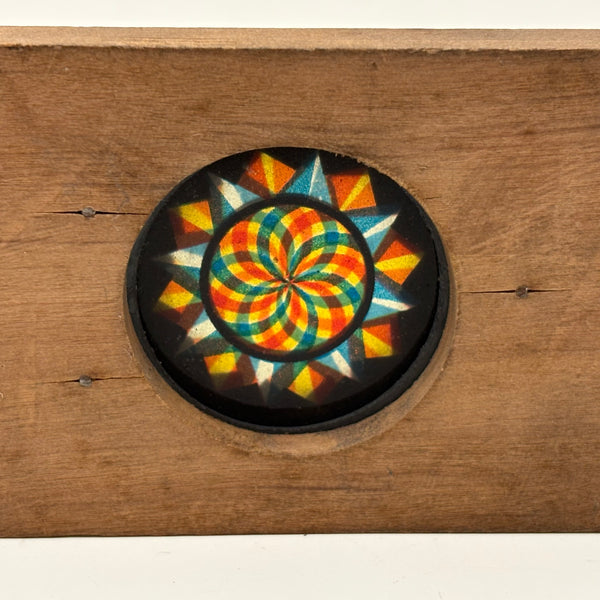 I'll never pass by a chromotrope if I can help it--optical magic of the purest sort. And this one is of a smaller scale than one typically sees, which makes it feel extra special to me. Bright and crisp color, with the optical effect produced by the rotation of one glass slide while the other remains static when one turns the handle. Lovely.