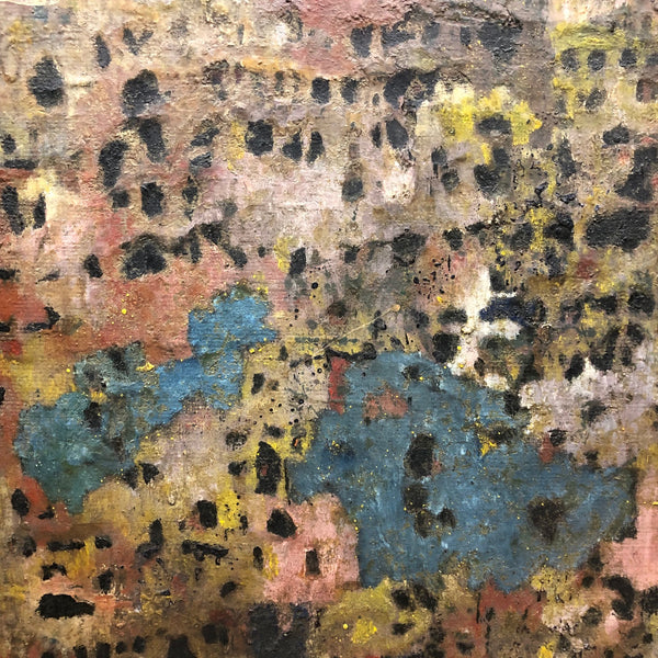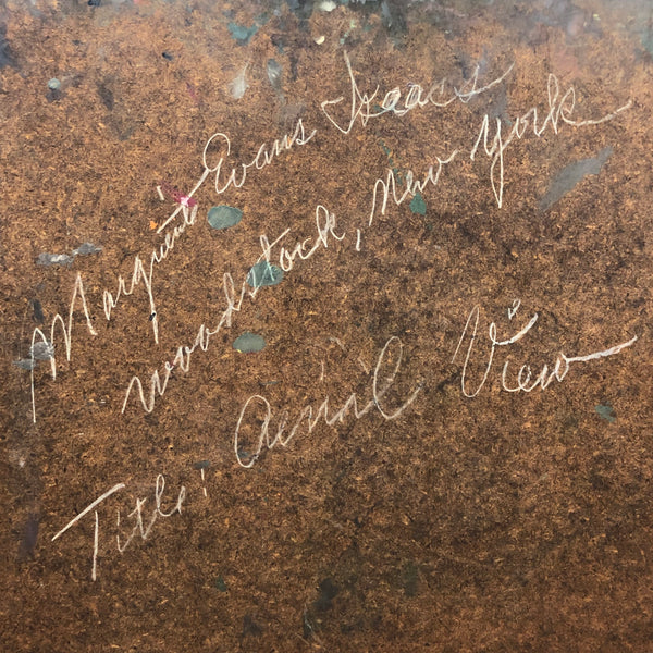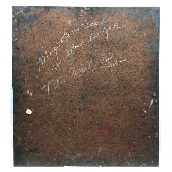 I purchased this one from the estate of an artist near me--I don't do a lot with mid-century art, but this painting struck me, and got better and better the more I looked at it. Skillfully done, with a complex and viscerally satisfying surface as well as a certain elusiveness that keeps me looking and looking again. Signed on the back Marguerite Evans Isaacs, Woodstock NY, and titled "Aerial View" - which makes perfect sense; perhaps that blue is the Hudson River itself. A quick search reveals that this particular painting was sold by Skinner in 2008 (for $237). Not a lot out immediately accessible about Marguerite Evans Isaacs, but American, 1911-1973, and a longtime resident of Woodstock, NY, where she lived for at least some period of time at the Maverick Art Colony.