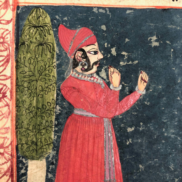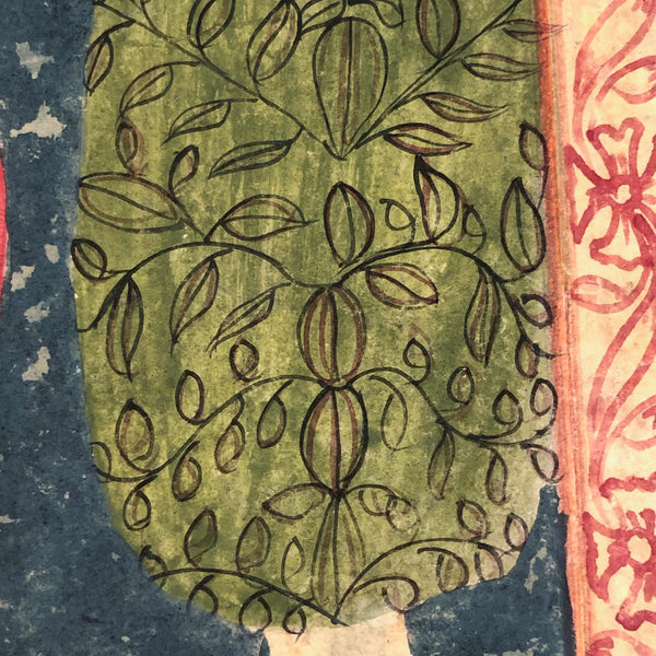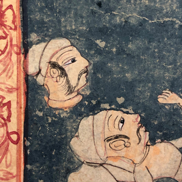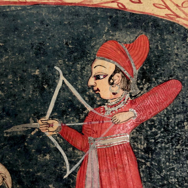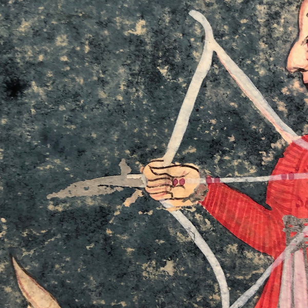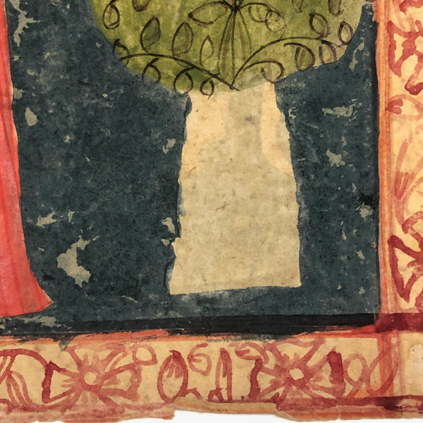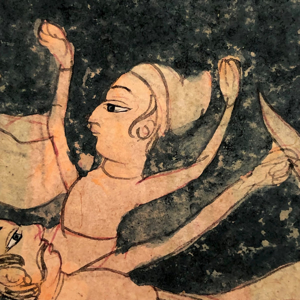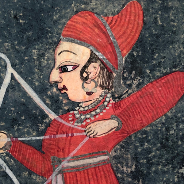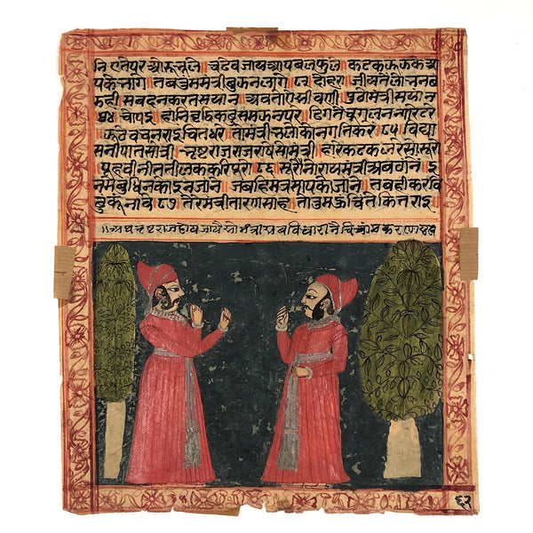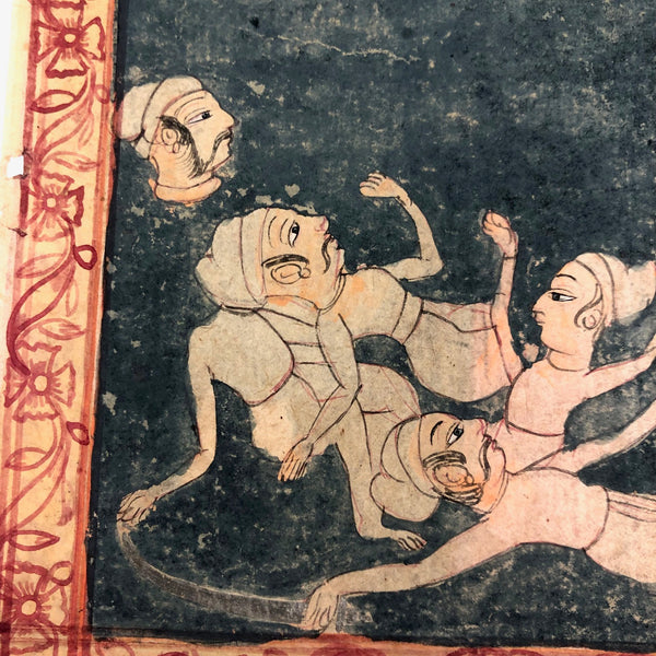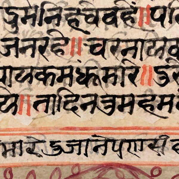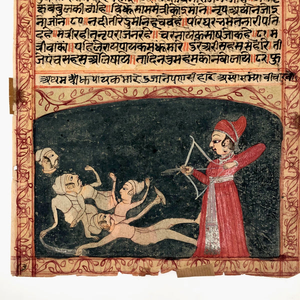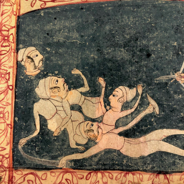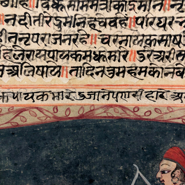Not really my expertise (what is?!) but I believe this is quite old, (18th c?) I can't read Sanscrit, and don't know the narrative being represented, but I do know it's an exquisite thing, that makes me think I really need to start paying more attention to Indian manuscripts! I've gone back and forth on which side of the double-sided page I like better--I'm completely smitten with this pair of men in rich red, one with fists up the other looking as if gesturing to take it easy, but then this woman with her bow and arrow who has left a pile of men in ruins! (The balletic gestures of their thin arms as they lay in a pile slays me, too.) The color and richness of the blacks, the gestures and details, the handwritten sanskrit, just gorgeous, and every inch filled. My new favorite thing (though there are several things I am quite in love with this week!) I'd definitely put in a double paned float frame so as to be able to view both sides.