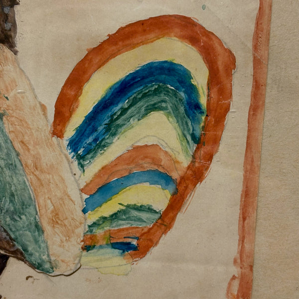 Pure joy. I am forever searching for early 19th century American folk art watercolors just like this--and what could be better than the rainbow of tail feathers on this rooster??? (Well, the two color combination on that wing is very excellent too!) And look at those marvelous ink drawn claws with pointy spurs! So full of life, and exuberance, and immediacy--and capturing quite the essence of a rooster. A watercolor like this feels to me as if sprung into being fully formed, just perfection.