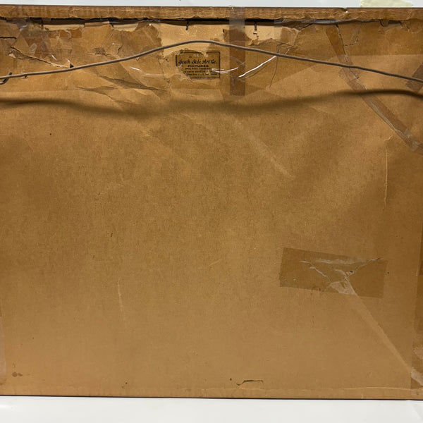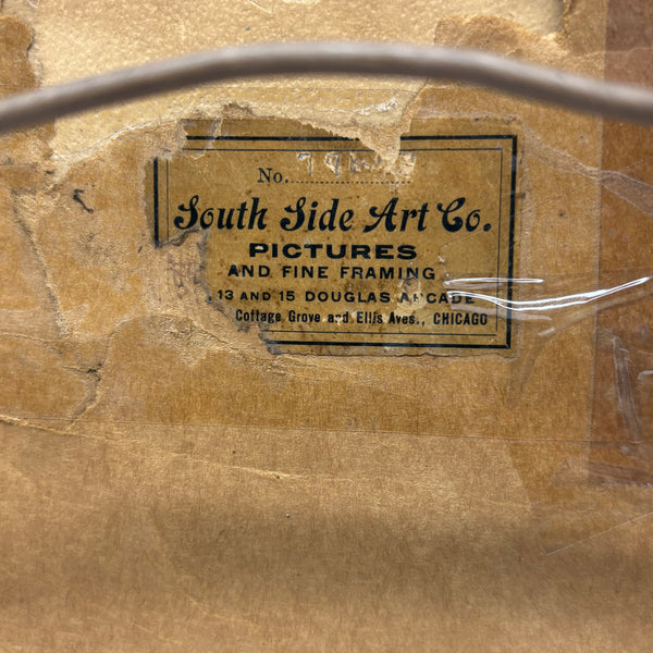 25 1/8" x 18" framed as found, under glass. Professionally framed years ago by South Side Art Co. Chicago, with a sticker on the back of the frame--simple black stained wood frame. 2nd quarter 20th century is my guess. Some glare caught in photos, which don't do it full justice; very good vintage condition.