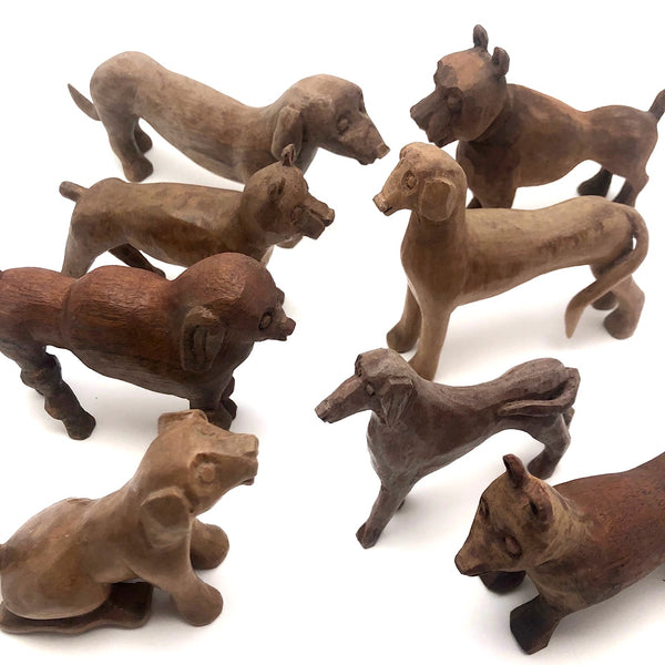 Sold individually. Each dog has a letter, A-H, as labelled in the photos; at checkout just indicate in the note field which you would like. Photos show whole group, then labelled pairs, then more details of each.