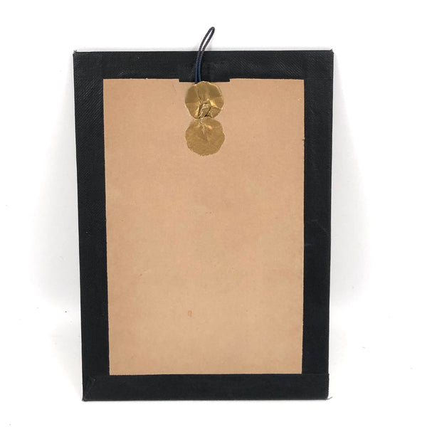 5 1/8 x 7 1/6 framed, as found. 5 1/2 x 3 7/8 paper. Very good condition, with a hanging loop at top.