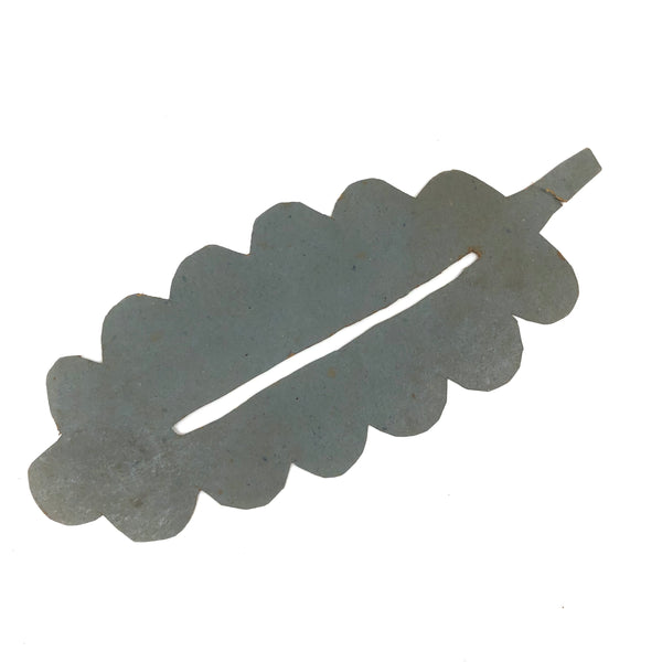 Longest (with center fold): 14 5/8" l; blue leaf: 9 7/8" l. All pictured included. The stem of the leaf shows a tear and old scotch tape repair on the reverse.
