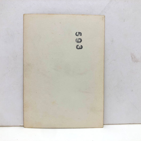 3 1/2" x 2 1/2" and in very good condition, c. 1940s or so, I believe.