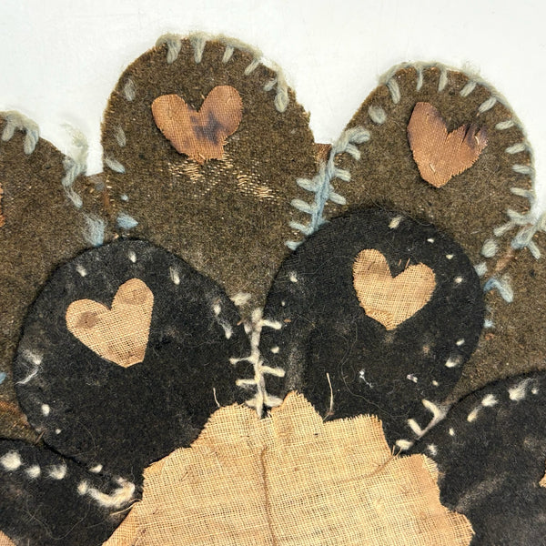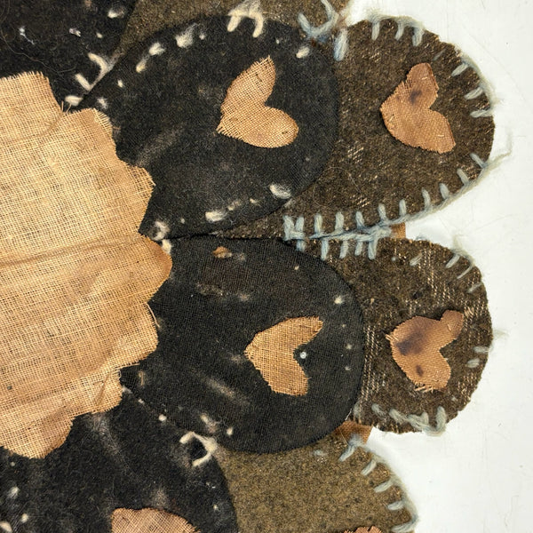 Most Wonderful 19th C. Miniature Penny Rug/Candle Mat with Hearts Everywhere