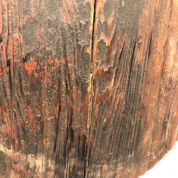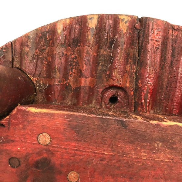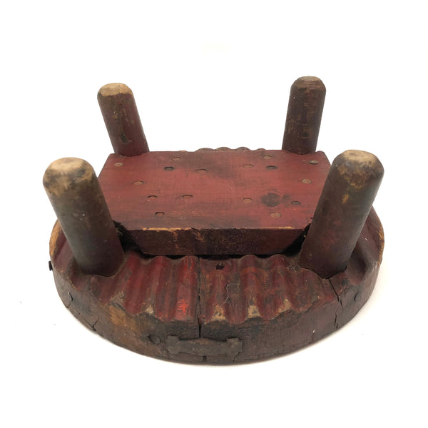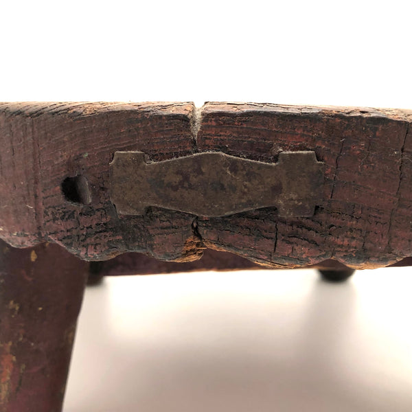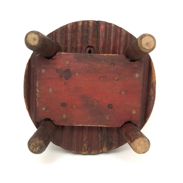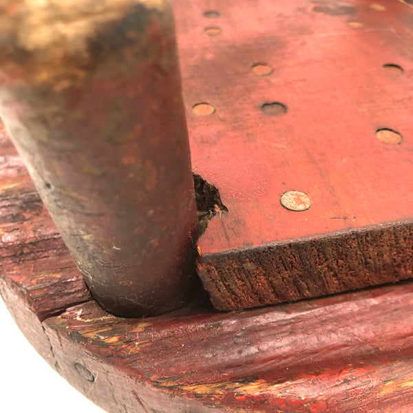 Much Loved Antique Scallop Edged Stool in Original Red Paint with Nice Repairs