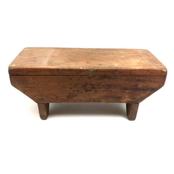 Another week, another old stool, this 19th century primitive one a perfect pedestal for a grouping of old carved wooden things. It looks from the underside as though it might once have been clad in light blue paint, but very few traces remain; instead, a nice warm dry pine patina. Found in mid-coast Maine.