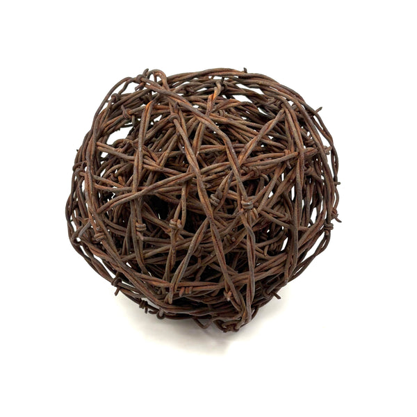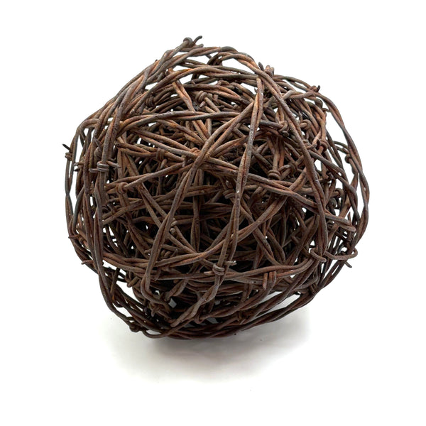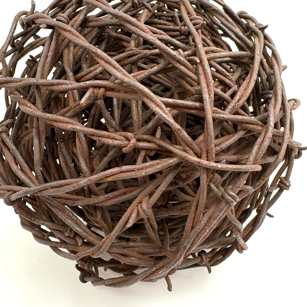 I found a large barbed wire ball a few years ago, but this is the first I've come across since--in Kansas City, which seems a logical place to find a barbed wire ball! I like these as object and sculpture, making me think of both tumbleweeds and of Meret Oppenheim! Tightly wound, and with rusting to the wire, but this one not aggressively sharp.
