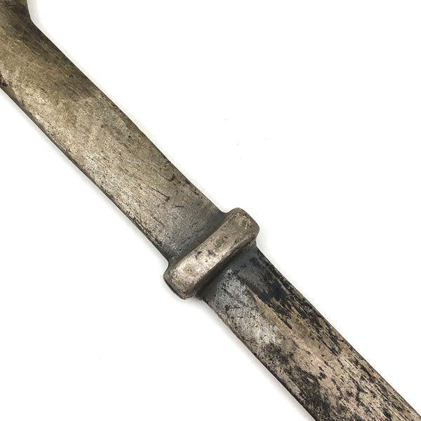 8" l x 1 5/8" w. Good much used condition, with a terrific rich patina.