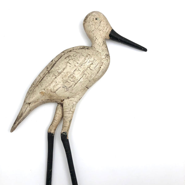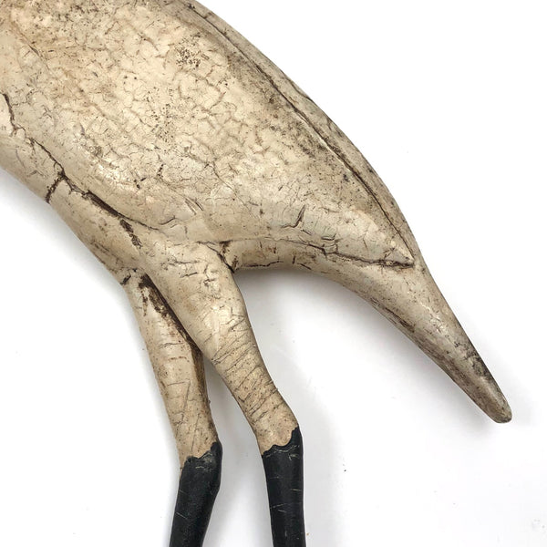 Old Carved, Polychromed Wading Bird with Great Form and Surface (As Found)