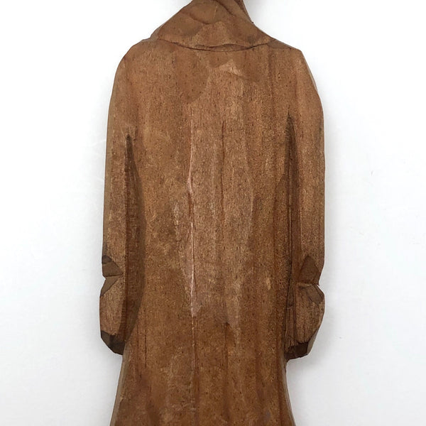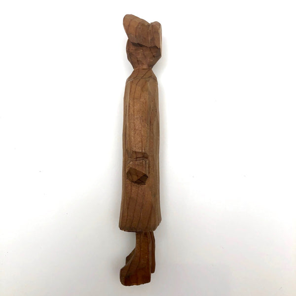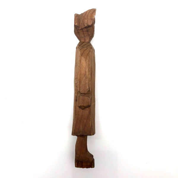 I paid about as much for this little old woman as I am selling her for, but there is no way I could leave her behind...that face! Squinting, but wide open. I like how her bonnet reads a bit like a big head of hair, too. I'd like to think she was the carver's mother or grandmother, maybe as she appeared ready to go to church.