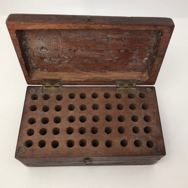 This gorgeous old wooden box was, I believe, made to hold drill bits, or perhaps old letter (type) stamps. Now, it would lend itself to a bunch of different creative uses, including sitting open on a desk holding pencils or pens, or just sitting closed, looking fabulous!