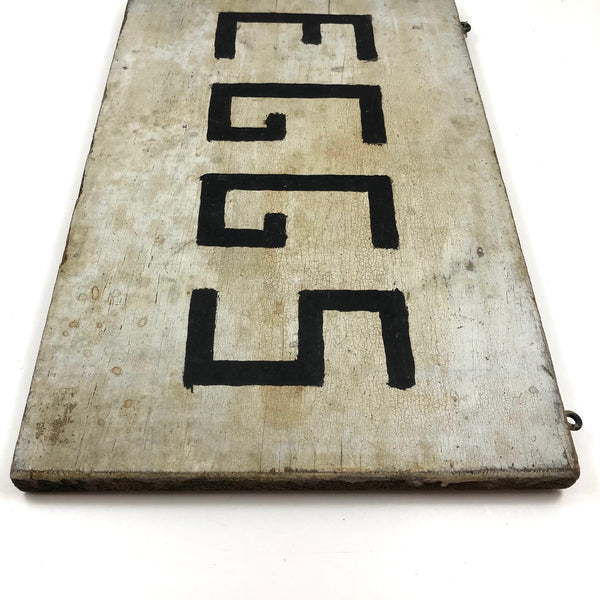 Old Hand-painted EGGS Sign with Creamy White Alligatored Paint