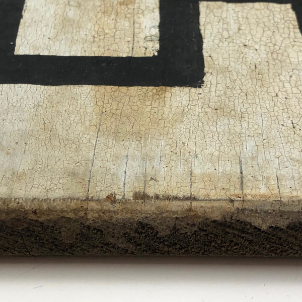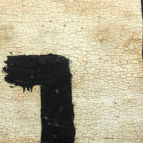 To my eye, a perfect, and perfectly matter of fact, old hand-painted sign, made even better by years of weather, softening the white to almost gray and resulting in a fine alligatoring of the paint. Just right.