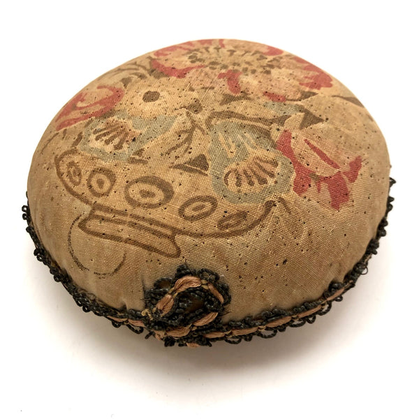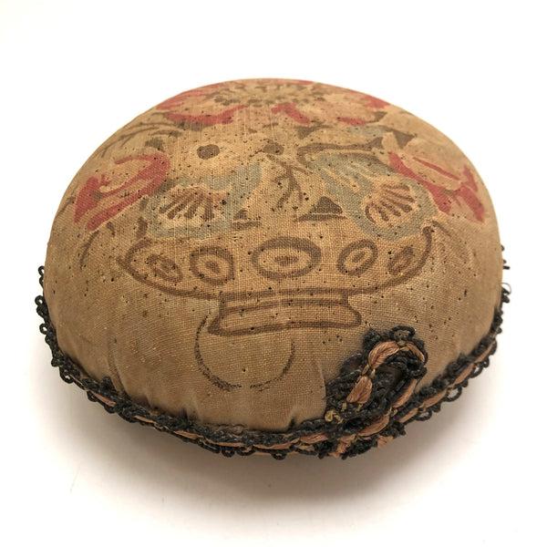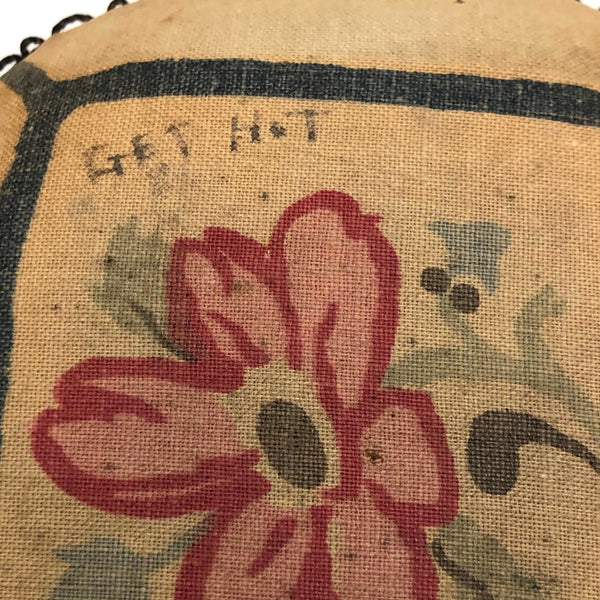 Old Printed Linen and Lace "Get Hot" Pin Cushion