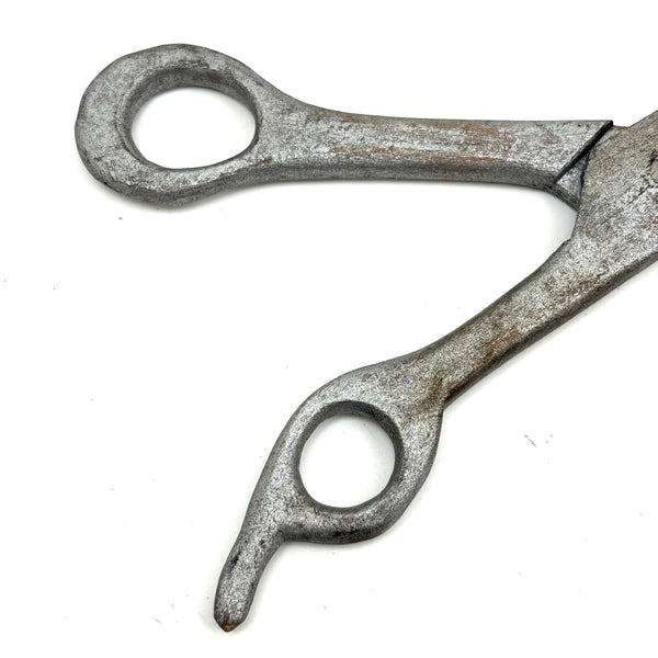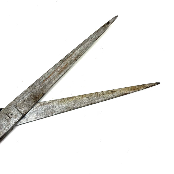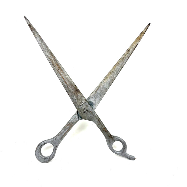 Not too much larger than an actual pair of scissors, but with nicely elongated proportions that make them feel more so. A nice whimsy of sorts, perhaps at one time hung in a tailor's shop, or at a hairdresser's?!