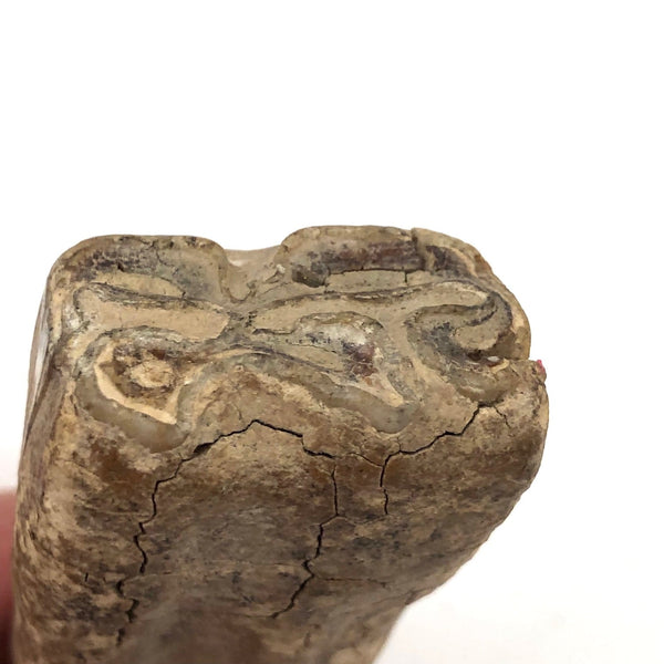 2 3/4" t x 1 1/4" x 3/4". Stands on its own with the root of the tooth at base. Satisfyingly smooth surface.