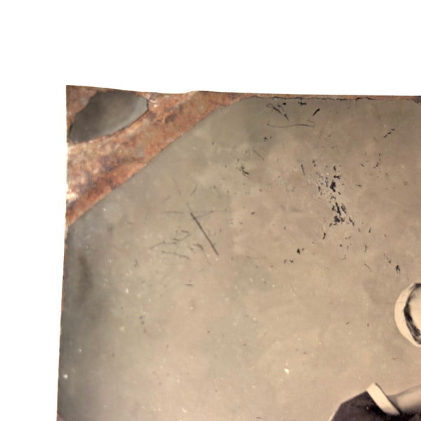 5 1/8" x 3 1/4". Surface loss to upper right corner and a diagonal line of surface loss coming in from right lower edge--all as documented.