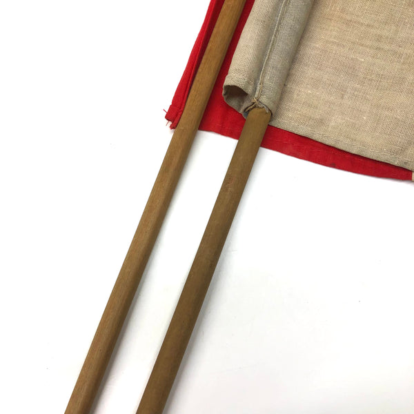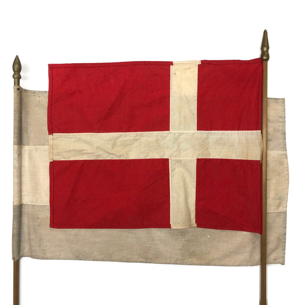 I are pretty sure these are WW era nautical signal flags, though I find identifying flags and their functions a bit confusing! I presume the white cross on red represents Denmark; the white stripes perhaps simply peace/ceasefire, though I'm not completely certain. Whatever the case, I think old flags like these are quite satisfying things to have around, and these two together make for a beauty of a combo. It also seems we may need to be signaling new allegiances and all sorts of things on the horizon.