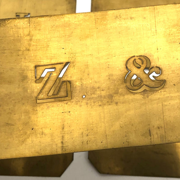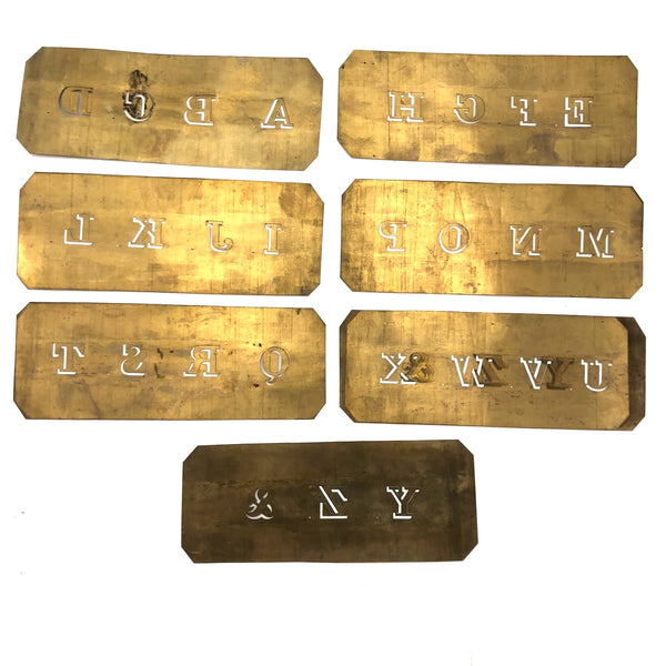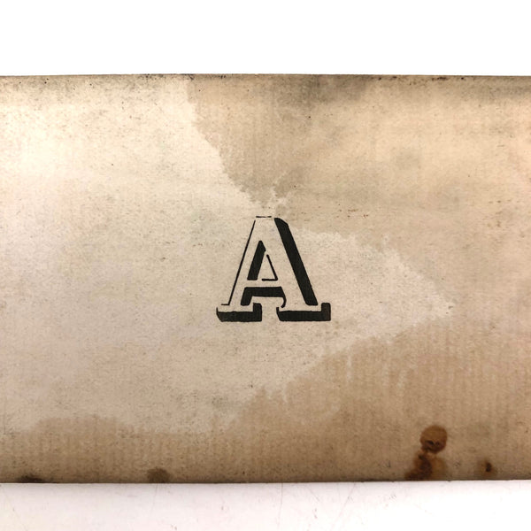 My photos do no real justice, but I find these SO beautiful, paper thin and shining like liquid gold in the light. I purchased these from a seller in England, and believe they came from the estate of an architect. I'm listing a few complete alphabet sets, in different fonts. Finely made, and completely useful still, though also completely worthy of framing should one be so inclined. This set comes with a laid paper wrap printed with the letter "A" from the set.