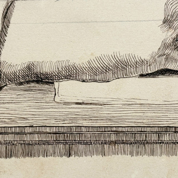 8 7/8" x 6 13/16". Very good condition, black ink on good weight drawing paper.
