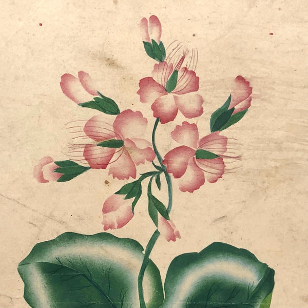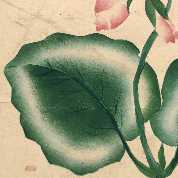 I just can't resist this sort of theorem watercolor, pretty and full of life and feels like spring. I especially love the treatment of the very green leaves on this one, with finely hand-painted veins and lighter green underside revealed along one edge. Plus those fine filaments extending from the pink flowers that make them seem as if fluttering.