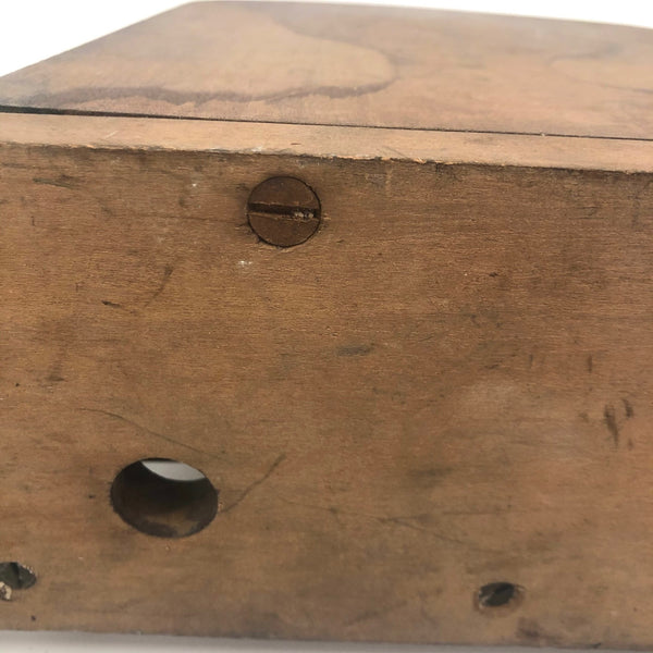 Overall dimensions: 12" wide x 12" tall x 4 1/8" deep. Just the panel measures 12" tall x 7 3/4" w x 3/4" d. Very good condition and super solid and sturdy, with fairly minor scratches and stains to the panel.