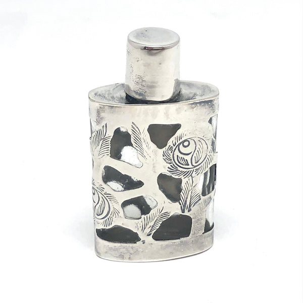 I've had a few of these little silver overlay perfume bottles in the shop, and will continue to scoop them up as I think they're lovely. Handmade in Taxco, Mexico (famed for its silver jewelry production), these are be great for carrying a small dose of a favorite scent while traveling or just running around.