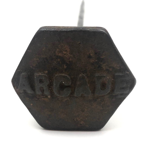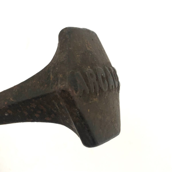 A little research led me to learn that this is quite a seldom seen and highly prized ice pick, dating to 1930 or so. I grabbed it because I love an ice pick as a thing in general (personally I'd say goodbye to ice cube trays altogether in favor of old school ice blocks), and because of the excellent weight and size of this one, and, most of all, because of the raised ARCADE on it's cast iron, hexagon shaped handle (just the right shape to really get a good grip on) as there is nothing I love more than good, evocative found language. As far as ice picks go, I understand why this is a coveted one, and it's also just a really good object--and a very sharp one!