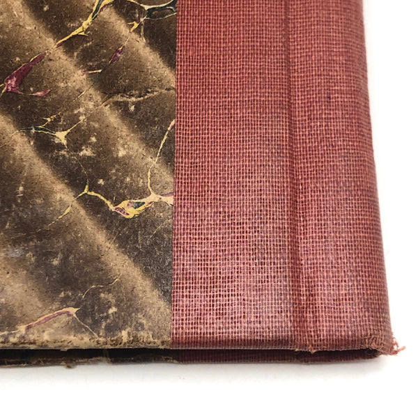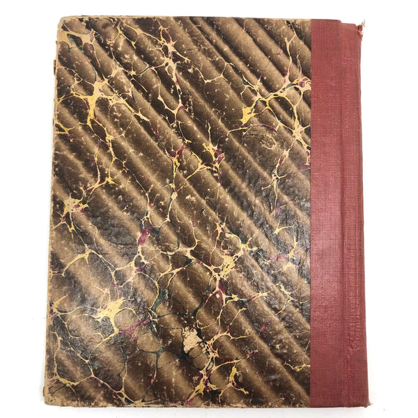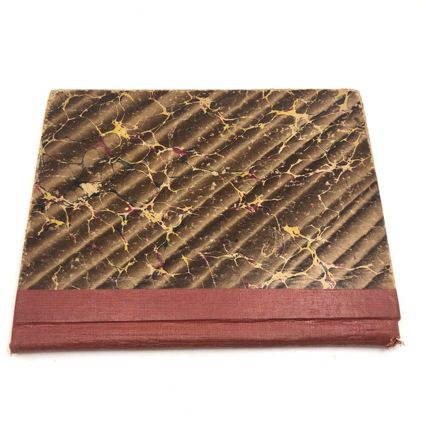 8 3/8" x 6 7/8" x 7/16". 56 pages (112 fronts and backs). Board covers and cloth spine. Some overall wear to the marbled paper on the covers and to the very top of the spine, but looks great and ready to fill!