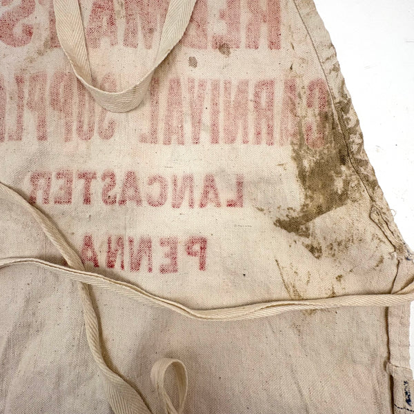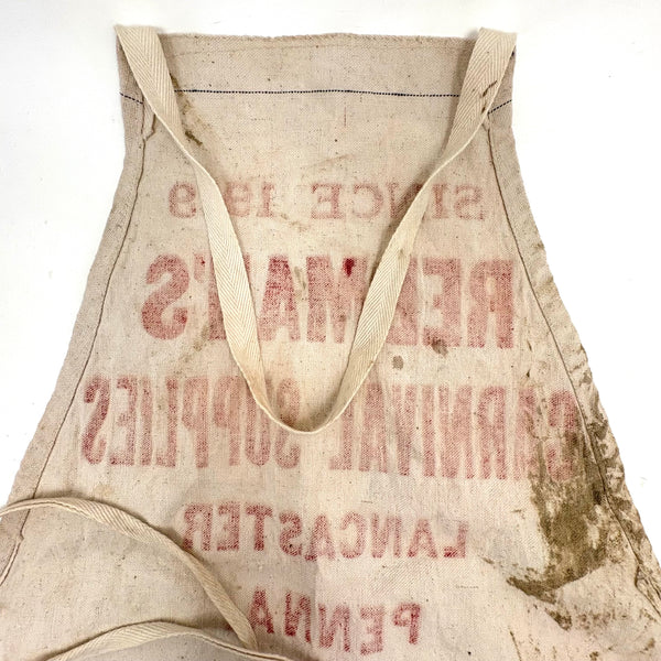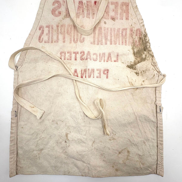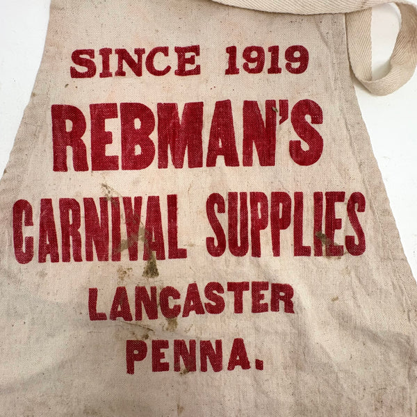 I didn't know anything about Rebman's when I found this work apron, not far from Lancaster, but have since learned it was quite the institution--started by Earl Rebman in 1909 (making candy at home for holiday sale) and by 1919 selling Christmas merch from a wheelbarrow in Penn Square. Lots about its history here. In addition to holiday merchandise (including x-mas year round) Rebman's developed a party supply business, selling everything from pinball machines to costumes to fireworks and much more. I believe this apron dates to the mid 20th c. or so.