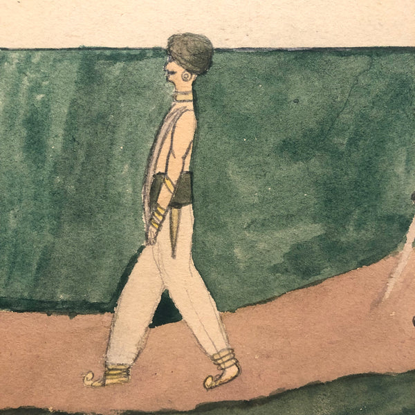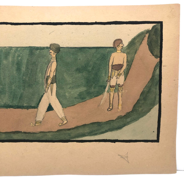 Regal Men in Turbans Walking, Naive c. 1930s Watercolor Signed (Captioned?) John Locke