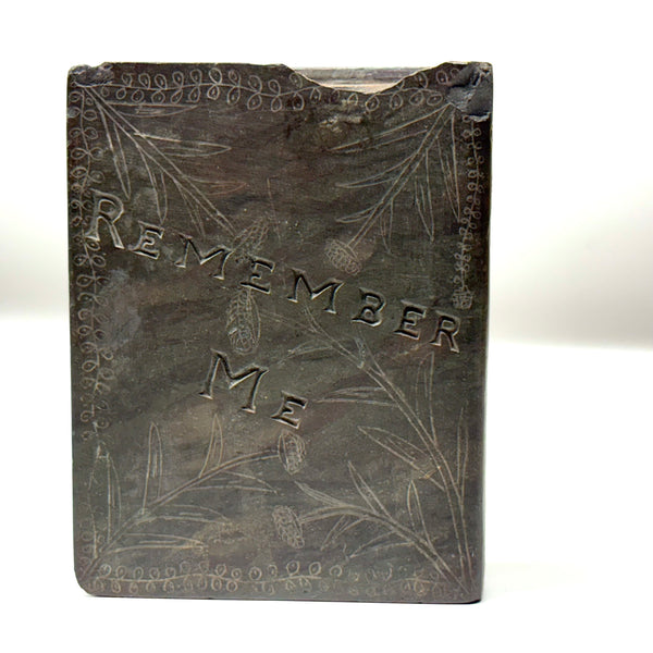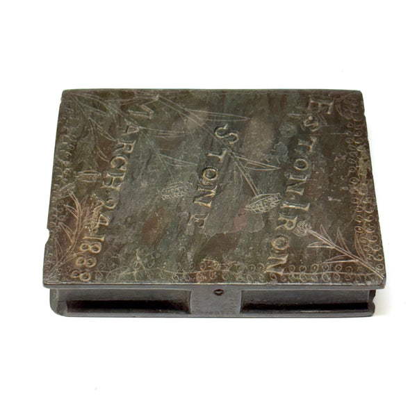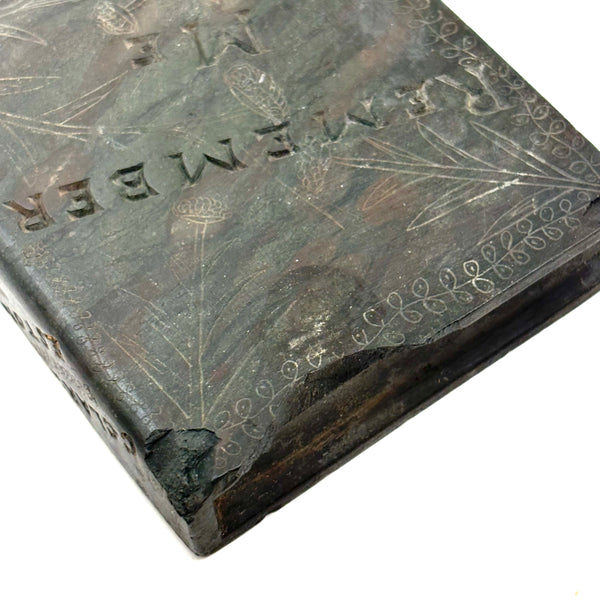 It has been quite a while since I found an antique carved stone book I really loved, but this one had my name written all over it--as well as the name of C. Clark! I believe the Eston Iron Stone carved into face of it likely refers to Eston, in the North Yorkshire, England--where the discovery of ironstone deposits in 1850 led to the rapid industrial development of the area, transforming it into a major iron and steel production center. And perhaps our C. Clark worked in the mines there. What I especially love here are the more lightly incised drawings of flowers and flourishes animating the surface of the stone, in addition to more deeply carved , bold lettering: "Eston Iron Stone March 24, 1888" on one side, and "Remember Me" on the other, and "C Clark Eston" on the spine. Plus the semblance of a lock across the recessed pages. A very sweet and very singular example.