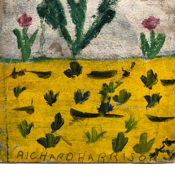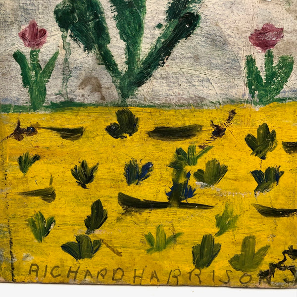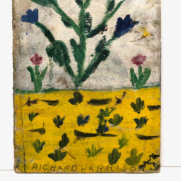 Another completely joyful thing, this one courtesy of a young (I presume) Richard Harrison, who printed his name proudly across the bottom long ago. Seems to me no words could really do justice to the exuberant full of life-ness of this painting, reminding me (as if I needed reminding) of the clarity and transcendent power of a great kid made piece of art. Better in person, and feeling newly wonderful every time I look at it.