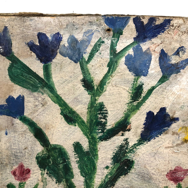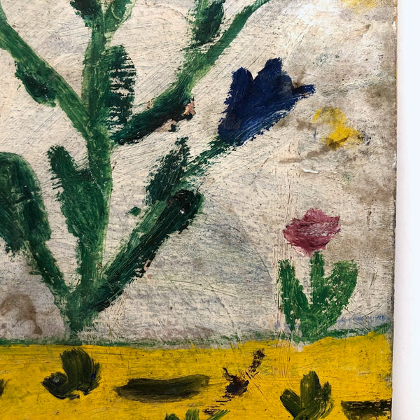 9 1/2" x 6 1/2" and in good, perfectly aged condition. Painted on heavy cardboard.