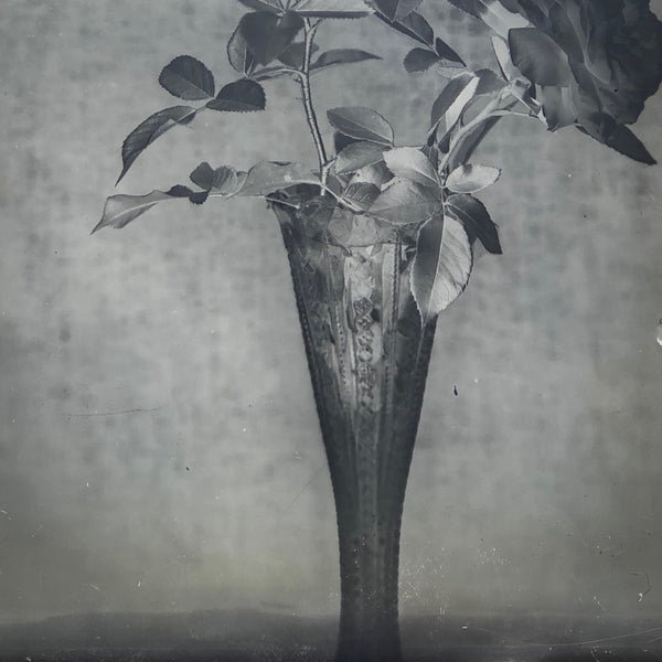 This is one of three 5" x 7" antique glass plate negatives in the shop capturing arrangements of roses in various settings. Pretty unusual, I think they are wonderful both as images and objects, and would probably prop them just as is in a windowsill, which is how I photographed them.I believe they probably date to the 1910s or 20s. Really lovely.