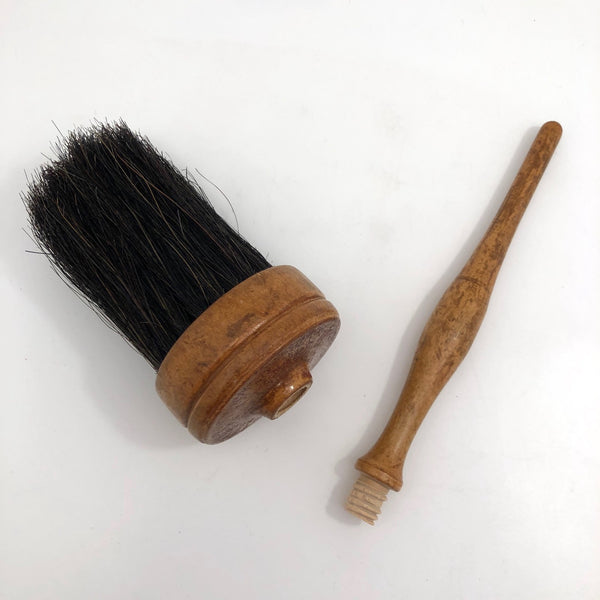 Round Painter / Duster Brush with Turned, Threaded Handle and Dark Horsehair Bristles