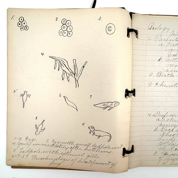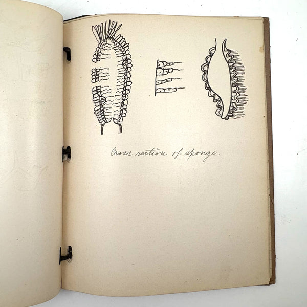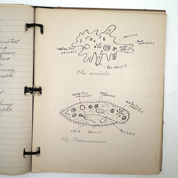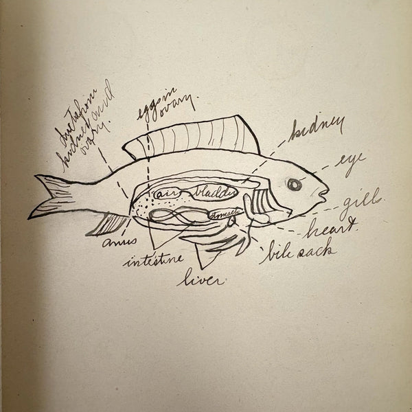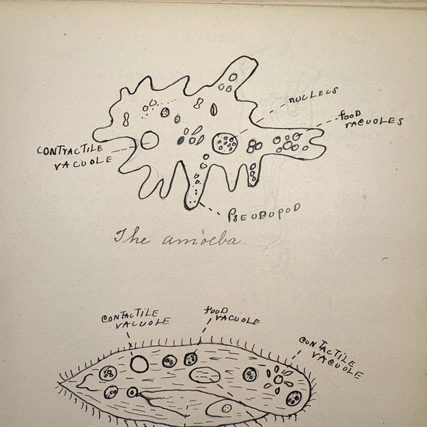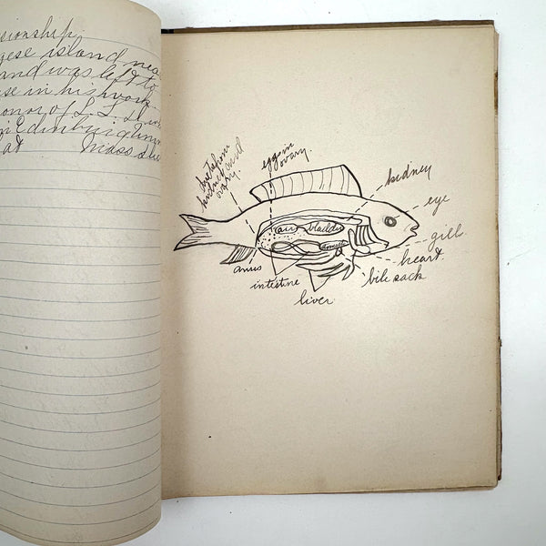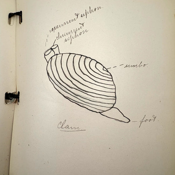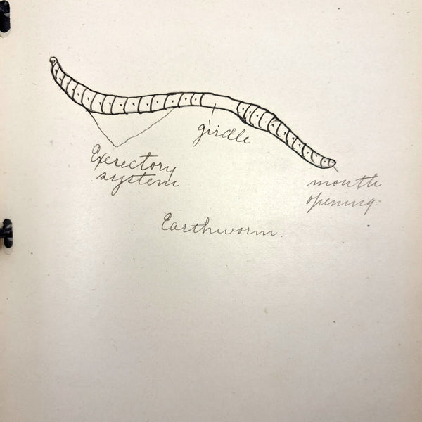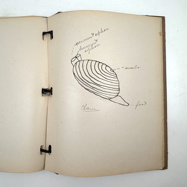 Lots of charming drawings/diagrams in this biology notebook, kept by a Ruth Seifert, enrolled at New Brunswick High School, in 1915. I am especially partial to the bird (such a great flurry of labels dissecting it!), but excellent frog and fish and crawfish and earthworm, and teeth, too! And a very empathic sort of clam! Ruth was an excellent notetaker, too. Methinks she got an A++.