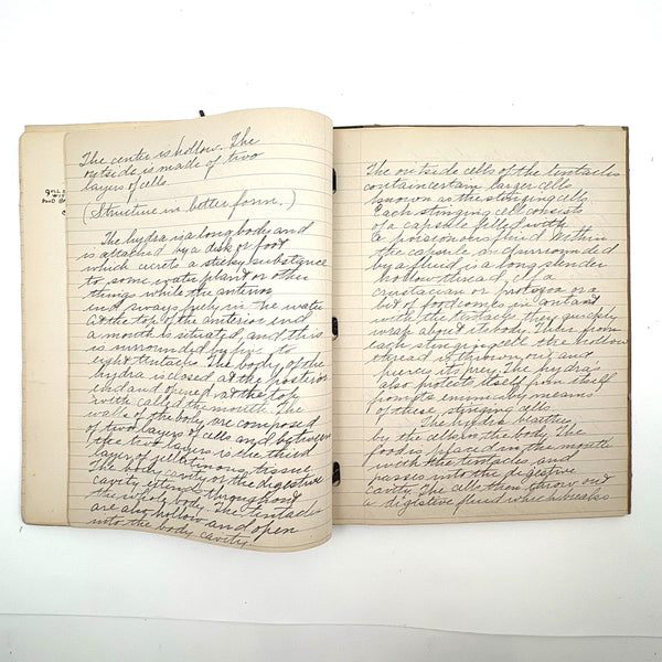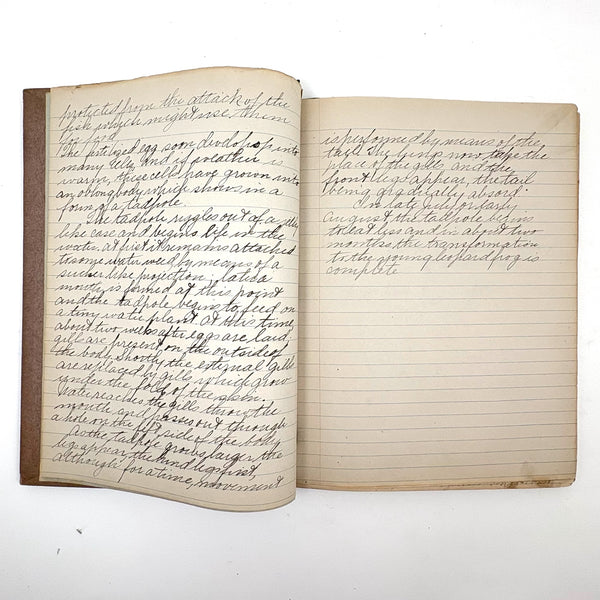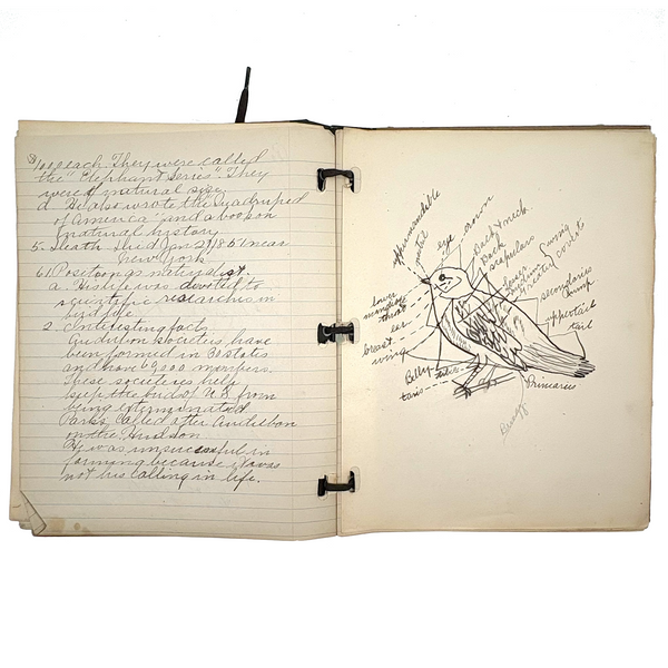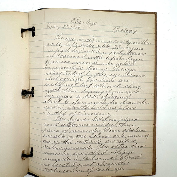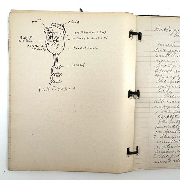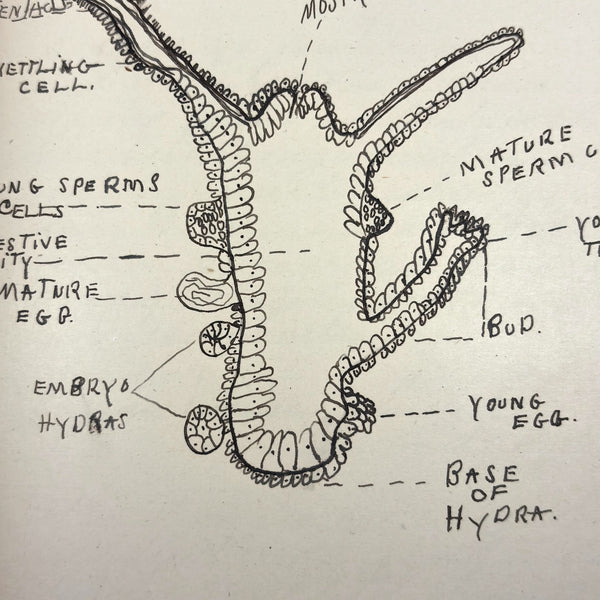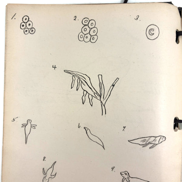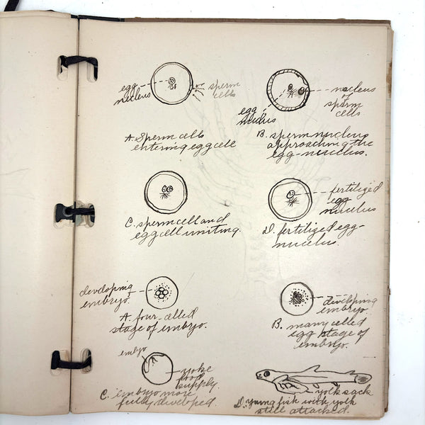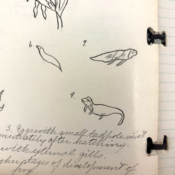 Lots of charming drawings/diagrams in this biology notebook, kept by a Ruth Seifert, enrolled at New Brunswick High School, in 1915. I am especially partial to the bird (such a great flurry of labels dissecting it!), but excellent frog and fish and crawfish and earthworm, and teeth, too! And a very empathic sort of clam! Ruth was an excellent notetaker, too. Methinks she got an A++.