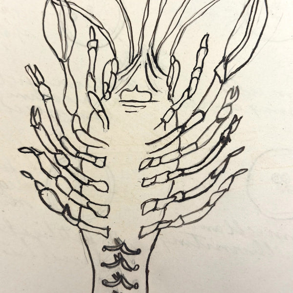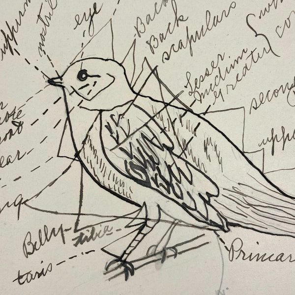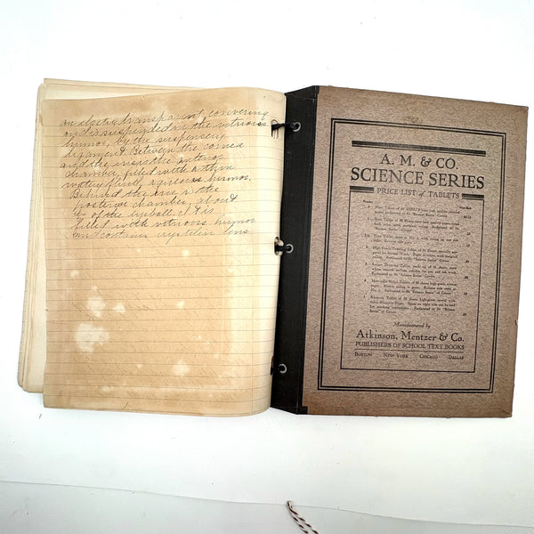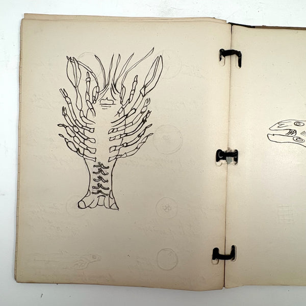 10" x 8", 25 pages, combination of handwritten notes and drawings/diagrams, some but not all pages filled on both sides. 19 drawing total, as pictured. (Just a few pages of text pictured.) I've included photos of a few favorite pages first, then photos go in order. Very good condition, and can be easily removed from binder.