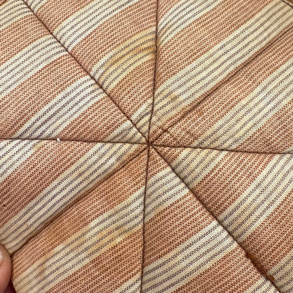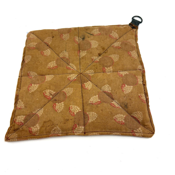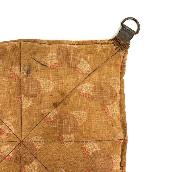 Satisfying Old Handmade Potholder with Great Fabrics and Corner Hook