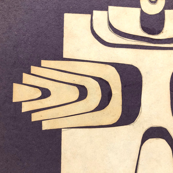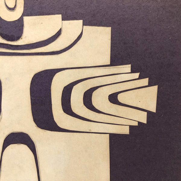 -they struck (strike) me as quite sophisticated things, feeling as much like formal studies by an accomplished modern artist of the early-mid 20th century as by the work of children. (Hung on the wall in a museum, I would easily believe this was a sketch in advance of a sculpture done by, say, Hans Arp!) Crisp, elegant, and with the softening/fading to the color of the purple construction paper enhancing a sense of timelessness--really a very lovely and rather transcendent little piece.