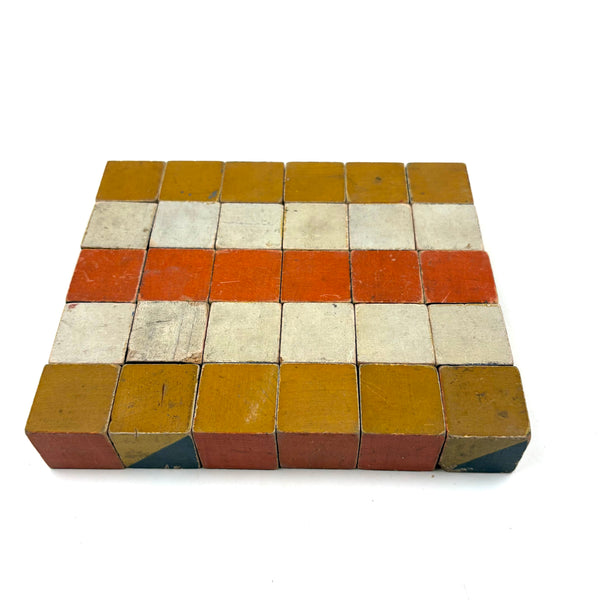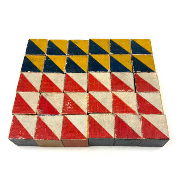 Blocks approx 1 1/8" square. All in very good condition, perfectly aged and worn. Set of 30. (I've listed the rest from the same lot separately, itself a great set!)
