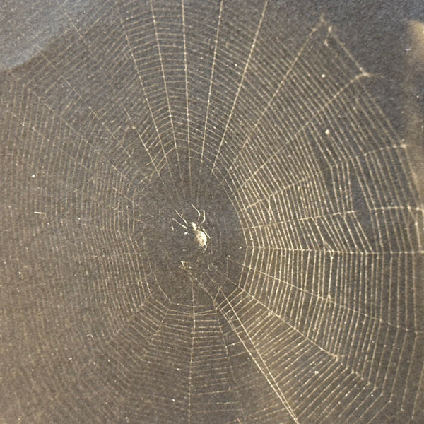 Based on the stamp on this one in purple ink at lower right I believe it is Hungarian; looks like it says Budapest to me. (And when this image was taken, Transylvania was still part of Hungary, which seems right for an image of a spider at the center of its web to me!) No explanation-- was this spinning of its web across this hanging frame a constructed situation, or a chance occupation of sorts? Whatever the case, a marvelous image, and just in time for halloween!