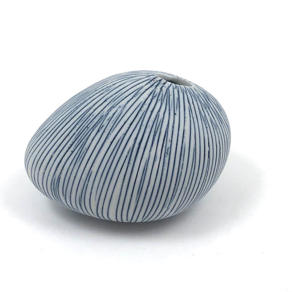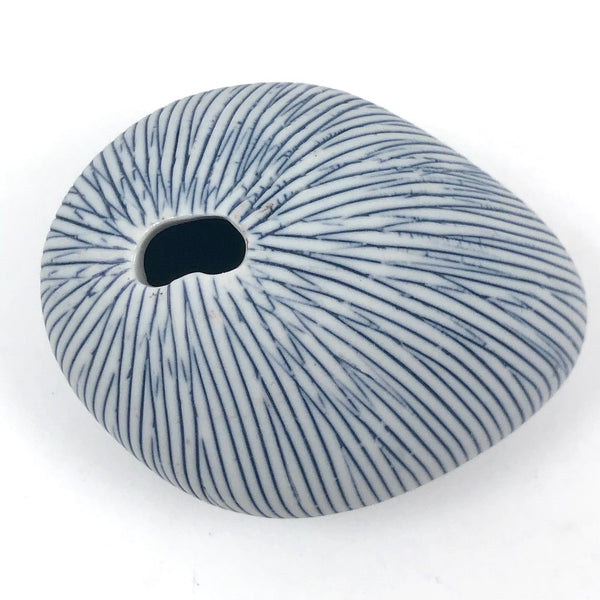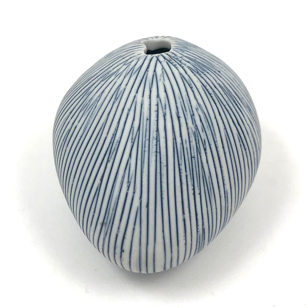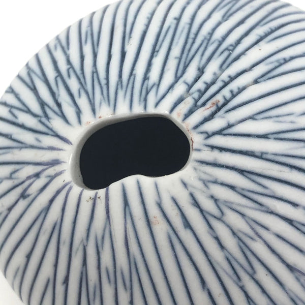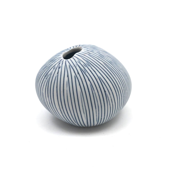 To my eye, this little porcelain bud vase is just about a perfect object, only to be made better filled with a few violets, or hellebore, or lily of the valley. Unsigned, I don't know who made it, but it feels very Japanese and very zen. Very thin walled porcelain, with an eggshell sort of texture and very finely incised and painted china blue lines.