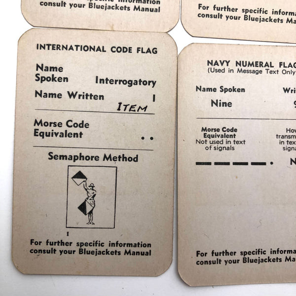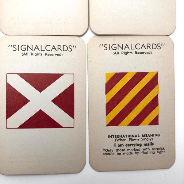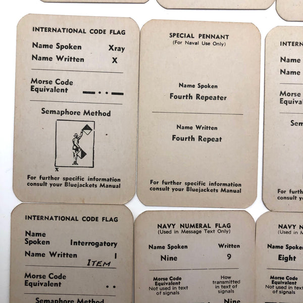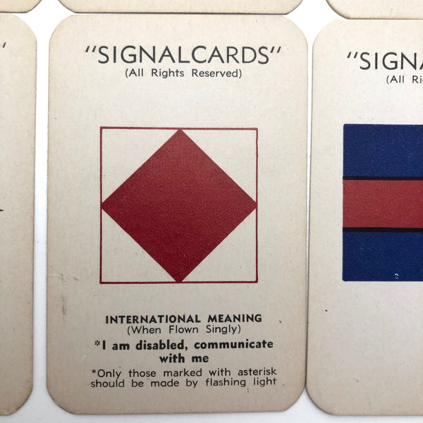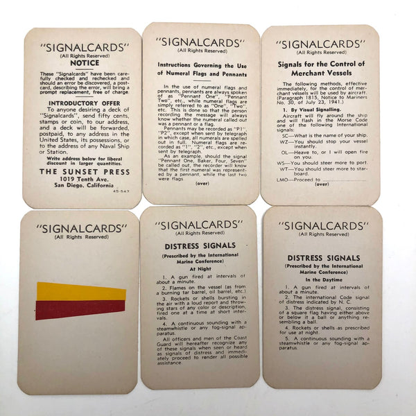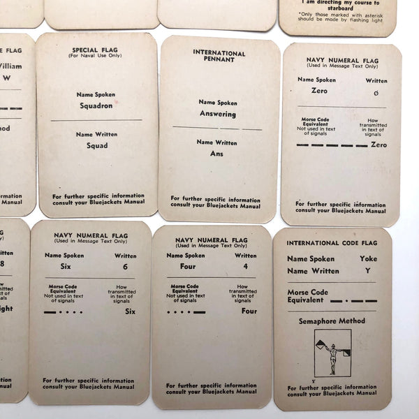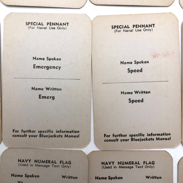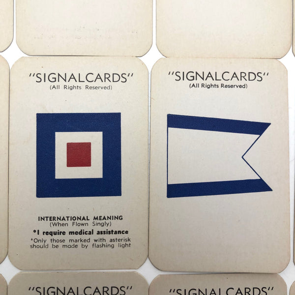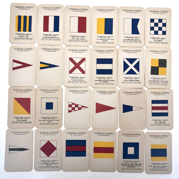 I don't think photos do full justice to just how beautiful these cards are; the color is bright and saturated and the stock is matte, not glossy, making them to my eye just perfect. Plus, how to beat the fantastic graphics of these signal flags, and the language explaining their meanings, such as "My vessel is healthy, and I require free pratique," or "I am carrying mails." These were made to be used as reference, I believe in WWII, and their backsides provide translation and other practical (and also poetic) information. Plus several instructional cards explaining more about the usage of all. Really great and surely fodder for all sorts of creative applications.