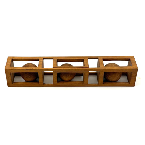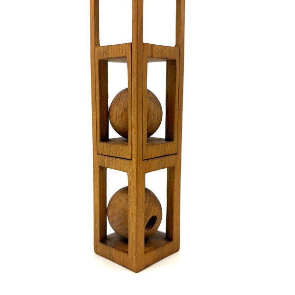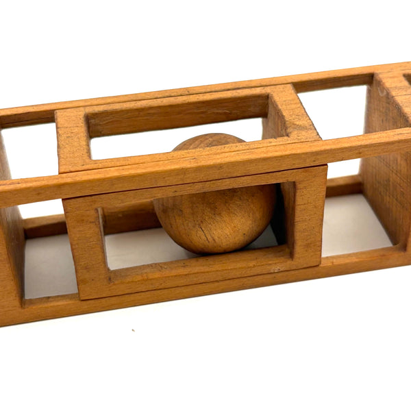 A very crisp, very modernist/minimalist feeling whimsy, including for the center ball in cage, which slides--allowing for viewer participation! (And it will hold in the "up" position when stood on end.) I love a tower whimsy, and a modular sculpture, and this feels to me like the Sol Lewitt of whimsies!